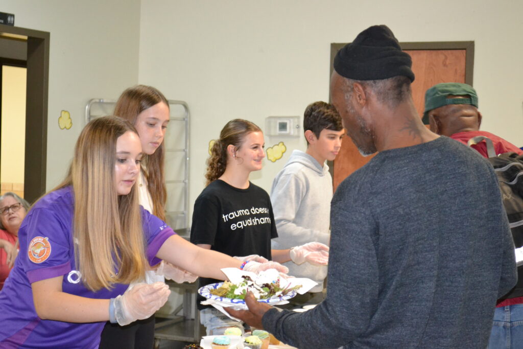“They seem very thankful,” said Evie Casey, 13, who helped serve deserts. “Whenever we hand them something, they’re like, ‘Thank you so much. We appreciate it.’”